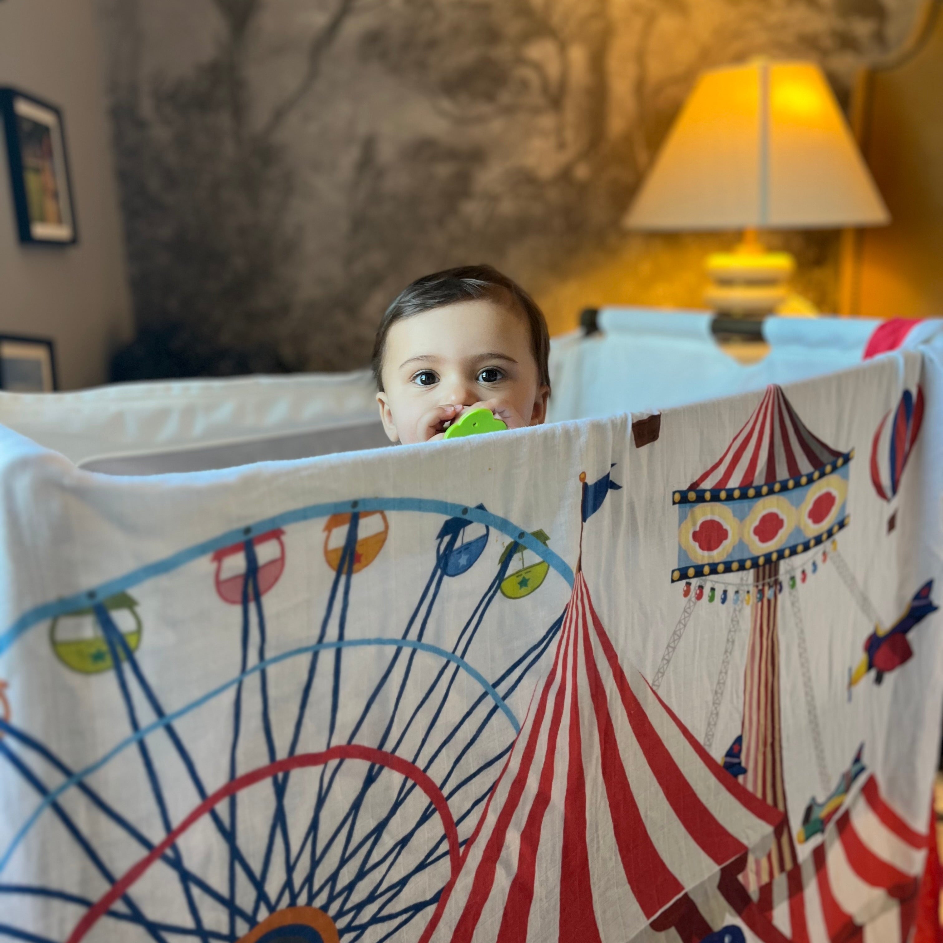 Our textiles marry form and function — ethically made from the finest organic cotton and bamboo muslin, printed in artist-designed colours, and crafted to bring quiet beauty to the rituals of early parenthood